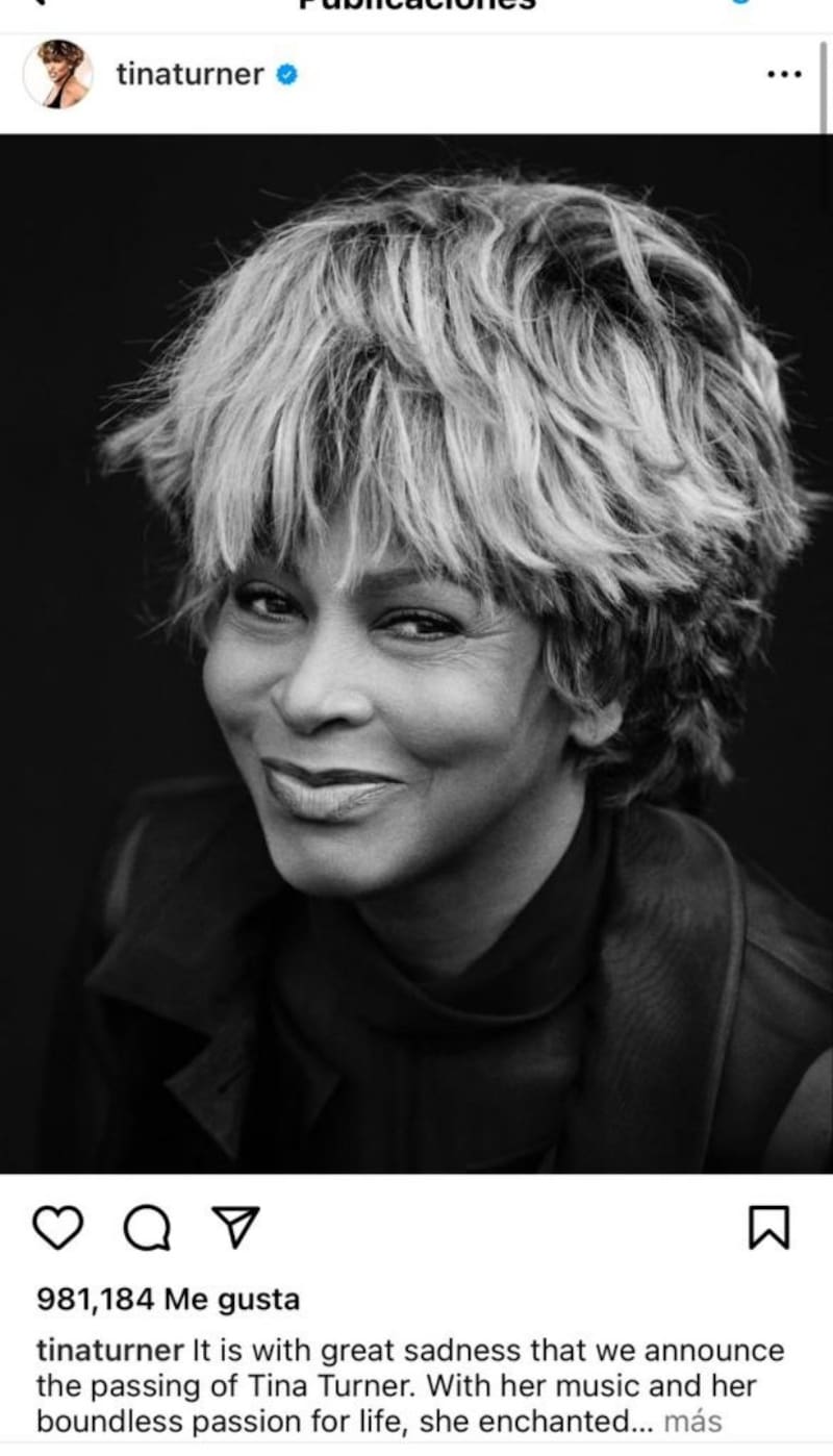 “Con gran tristeza anunciamos el fallecimiento de Tina Turner. Con su música y su pasión ilimitada por la vida, encantó a millones de fans alrededor del mundo e inspiró a las estrellas del mañana. Hoy despedimos a una querida amiga que nos deja todo su mayor trabajo: su música. Toda nuestra sincera compasión va con su familia. Tina, te echaremos mucho de menos”, se puede leer en su instagram con una fotografía en color blanco y negro de la “Reina del Rock’n Roll”.
