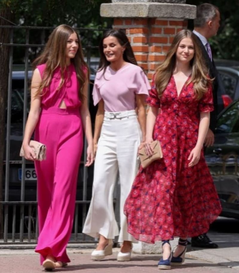 La familia real española se reunió para esta ocasión especial con looks que iban de los colores blanco, rojo y rosa. Medios de comunicación se dieron cita en el recinto para captar una postal del recuerdo.