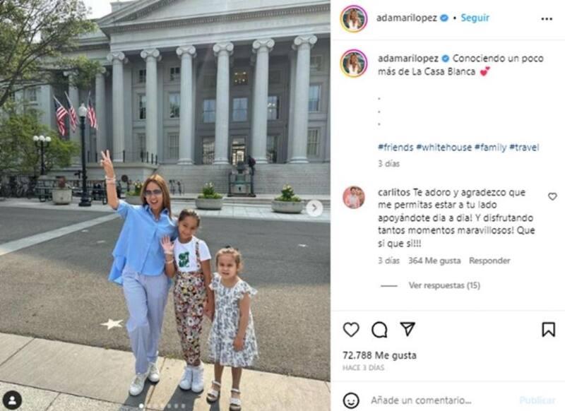 “En la primera oportunidad pude conocer los jardines de la Casa Blanca, pero no de hacer un recorrido dentro de la Casa Blanca, así que hoy me han extendido una invitación para poder entrar junto con otra gente que viene. Tenemos la oportunidad de entrar hoy, hay que hacer fila, no se puede tener carteras, ni mochilas, no se puede traer agua, no se puede grabar, pero sí hacer fotos. Vamos a hacer este recorrido y lo vamos a estar poniendo”, expresó Adamari.