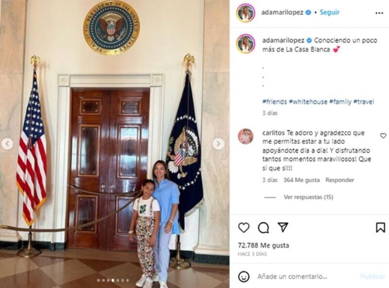 “Yo nunca había tenido la oportunidad de visitar la Casa Blanca por dentro y me hace mucha ilusión, sobre todo porque Alaïa está estudiando la historia de los Estados Unidos y es la nación donde vivimos, así que qué mejor que venir y conocer un poquito más de nuestra historia”, comentó la ex de Toni Costa.