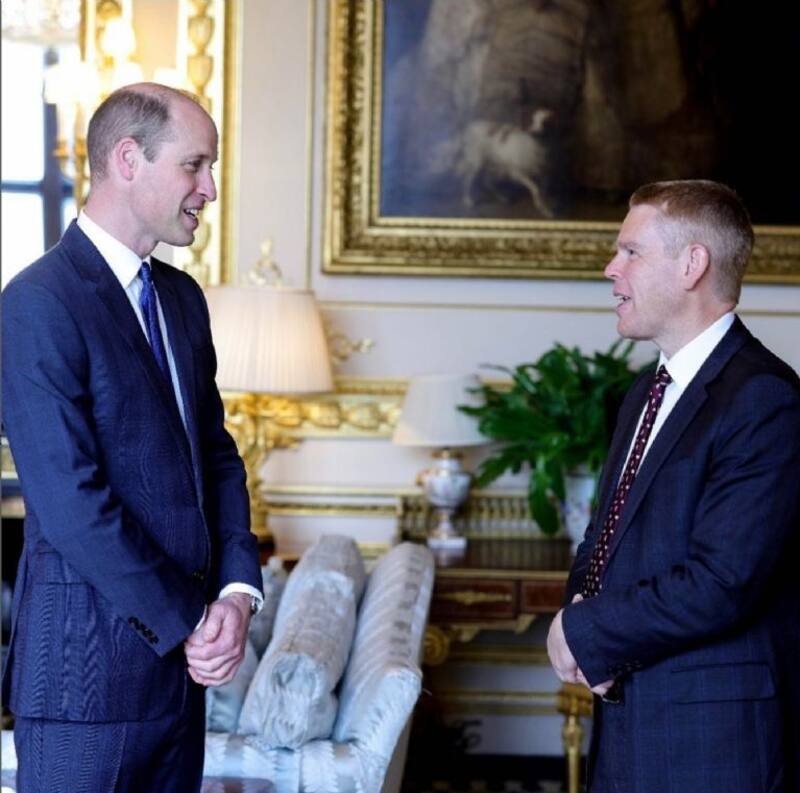 El príncipe William dio la bienvenida de manera oficial al primer ministro neozelandés, Chris Hipkins, el primer invitado que llega a Londres para asistir a la ceremonia de coronación, que se llevará a cabo el 6 de mayo en la Abadía de Westminster.
