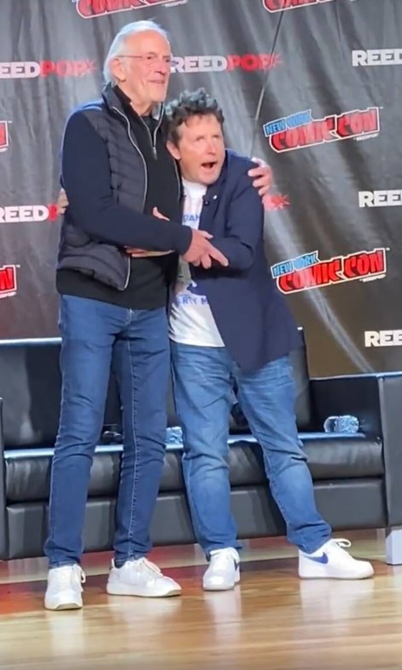 Michael J. Fox y Christopher Lloyd, los actores que le dieron vida Marty McFly y Emmett 'Doc' Brown en la icónica cinta "Back to the Future", se reunieron este fin de semana en el evento de la ComicCon, en Nueva York.