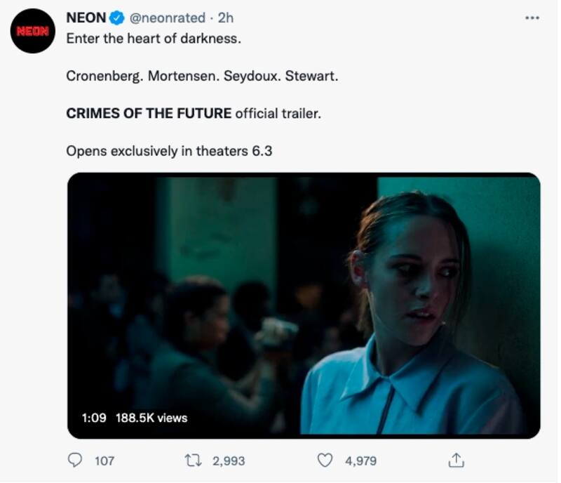 El tráiler ha causado sensación. Entre la sangre, la violencia y la profanación permea un ambiente erótico y sensual, pero todo en las atmósferas retorcidas del cine de Cronenberg, que habla sobre la evolución, los límites y el poder sin olvidarse de las relaciones humanas llevadas al extremo.