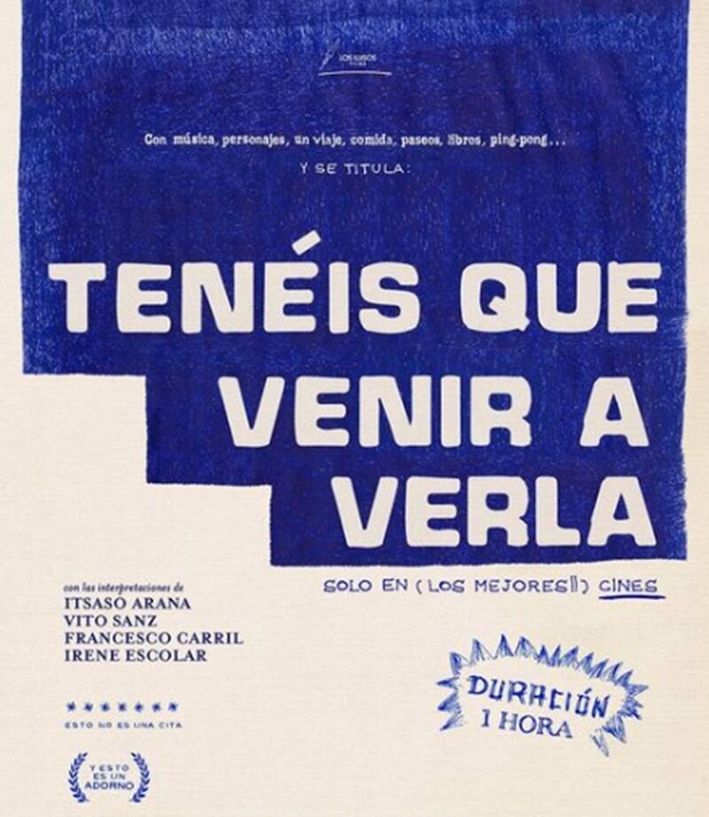Esta película de Jonás Trueba es una invitación expresa para ir a las salas de cine. Itsaso Arana, Vito Sanz, Francesco Carril e Irene Escolar protagonizan este filme-reencuentro producido nuevamente por Los Ilusos Films. El filme se estrena en cines, apostando por una única sala en cada ciudad con la intención de convertir la exhibición de la película en algo más concreto y cercano.