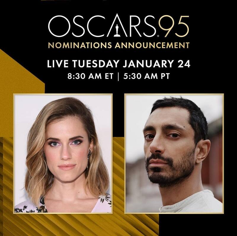 El actor inglés Riz Ahmed y la estadounidense Allison Williams se encargarán de presentar las nominaciones para la nonagésima quinta edición de los premios Oscar.