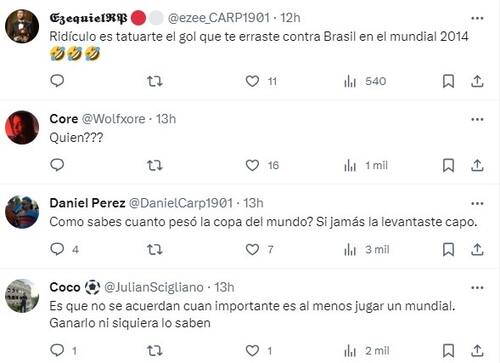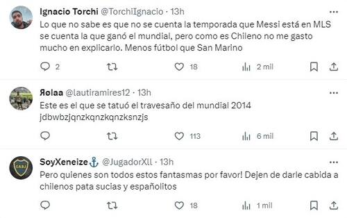 El posteo, era que no, fue comentada por cientos de hinchas argentinos, que no olvidan que el exdelantero alguna vez se tatuó su recordó tiró en el travesaño jugando por La Roja ante Brasil en el Mundial 2014.