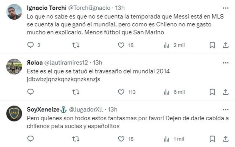 El diario trasandino se lanzó con todo contra el exfutbolista chileno, replicando sus declaraciones con un directo llamado en sus redes sociales oficiales: “Desde acá se siente el olor a envidia”, con el emoji de una nariz y una bandera chilena. La publicación obviamente acompañada por la imagen de Messi y el Dibu con sus Balones de Oro.