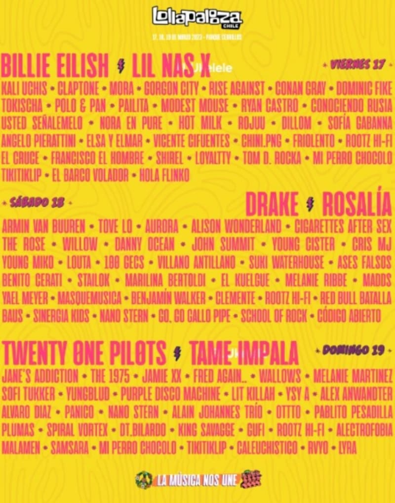 Pero agregó que no solo está feliz de compartir su música, sino también de ver a sus artistas favoritos. "Voy a poder ver a Drake y a Rosalía, a ella fui a ir a verla recientemente, es una de mis artistas favoritas. No es solo para mí poder tocar, sino también poder ver a algunos de mis artistas favoritos en América del Sur. Quiero decir, estoy tan emocionada.", dijo.