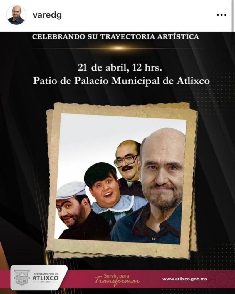 Edgar Vivar recibirá un merecido homenaje el próximo 21 de abril en el Pueblo Mágico, Atlixco, Puebla, por su trayectoria artistica, pero que es lo que ha mantenido vigente al comediante por más de tres décadas.