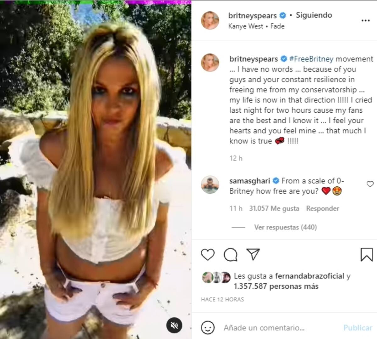 Y es que. en un breve post, acompañado de un video montaje con ella mirando fijamente a la cámara, agradeció al movimiento #FreeBritney por el apoyo que ha tenido en los últimos años.