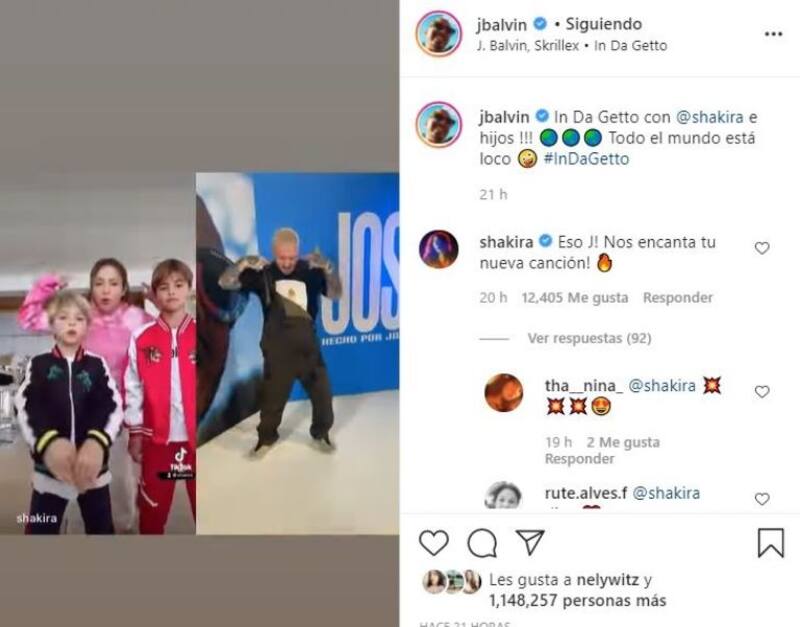 Pero esta riña parece haber quedado en el pasado, pues hace unos días Shakira subió un vídeo en el que se le ve bailando junto a sus hijos el más reciente tema de Balvin “In Da Getto”.