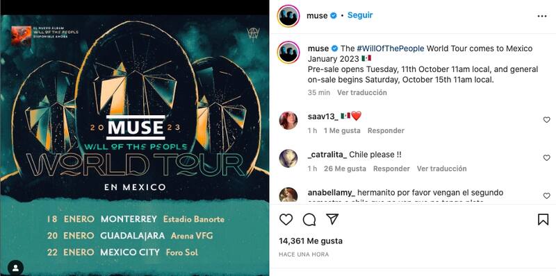 La banda conformada por Matt Bellamy, Dominic Howard y Chris Wolstenholme ha anunciado en su cuenta oficial de Instagram que tocará en Monterrey, Guadalajara y Ciudad de México, las tres ciudades principales del país, en enero de 2023. Ocesa, la empresa promotora de los espectáculos, confirmó la información.