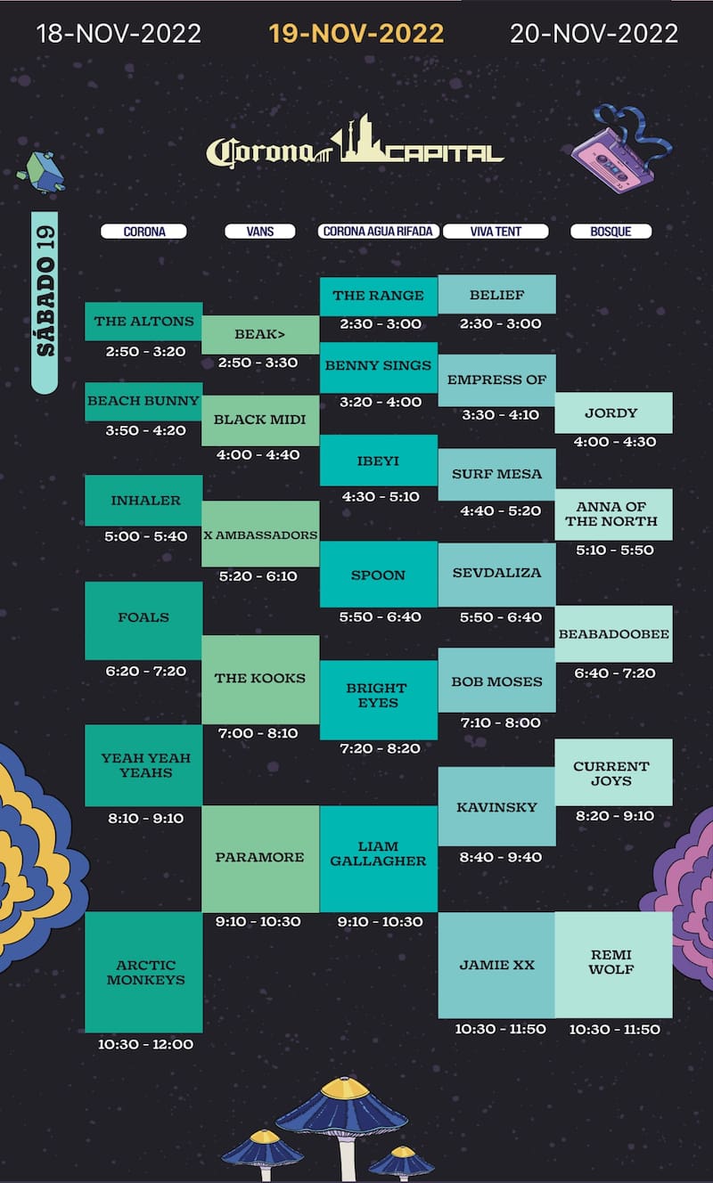 A una semana de que se celebre la edición 2022 del Festival Corona Capital en Ciudad de México, ya se liberaron los horarios en los que se presentará cada una de las bandas.