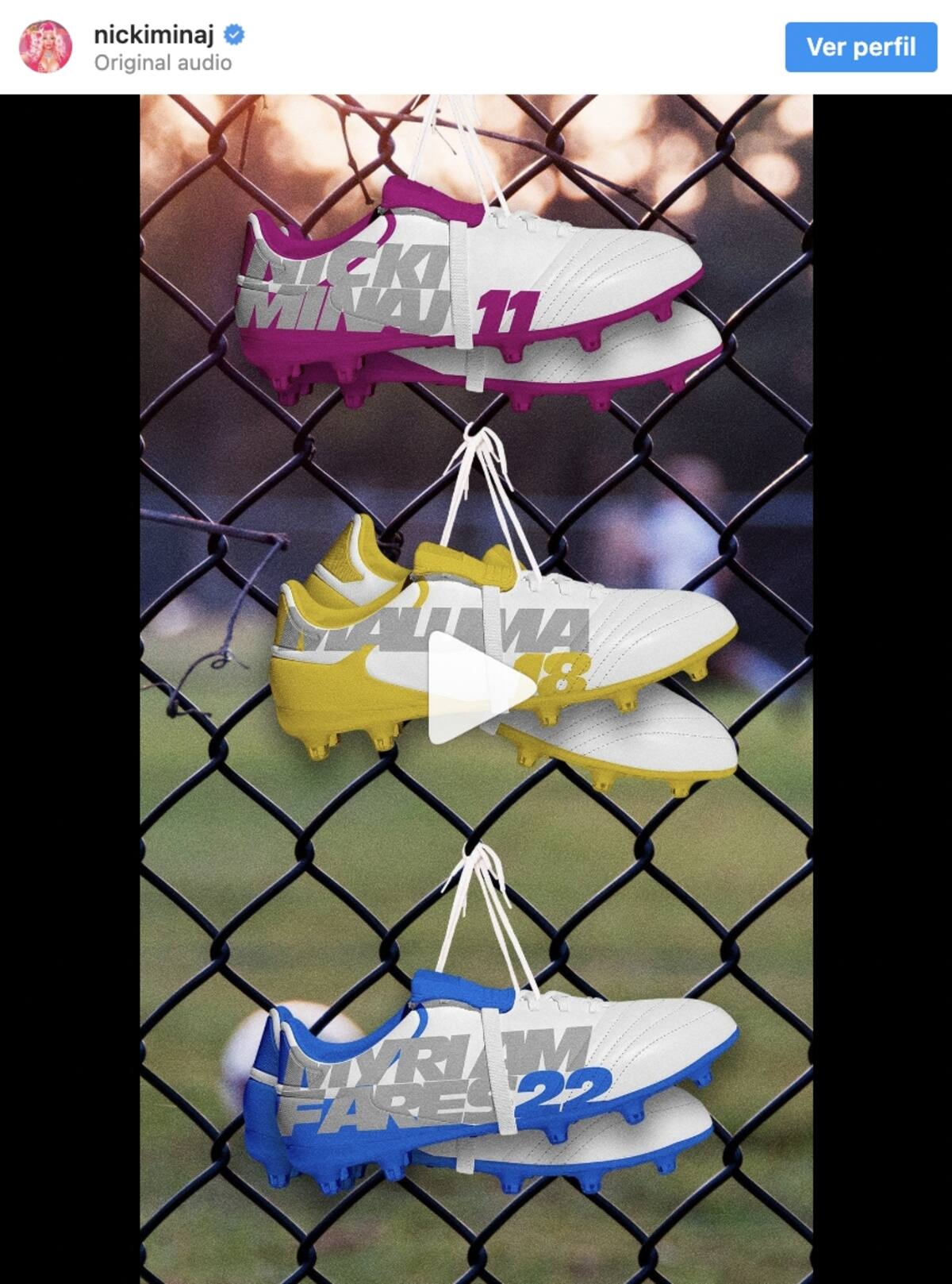 Hace un par de días y publicado en Instagram por la rapera Nicki Minaj, se dio a conocer una particular foto en la que se observaban tres pares de botines de futbol, cada uno con el nombre de los artistas que cantarían este tema: