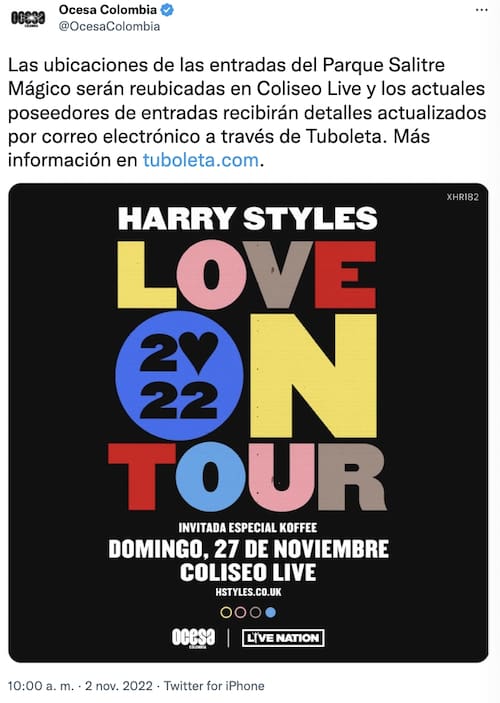 Así fue la comunicación de Ocesa Colombia sobre el concierto de Harry Styles
