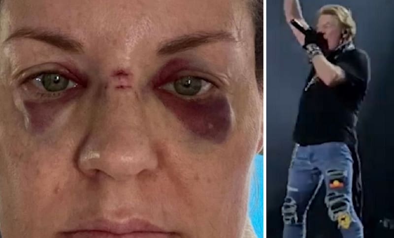 Todo ocurrió durante "Take Me Down To Paradise City", última canción del set list del concierto, momento en que Axl Rose tiro su micrófono a la audiencia, impactando en la nariz de la mujer, dejándola en shock.