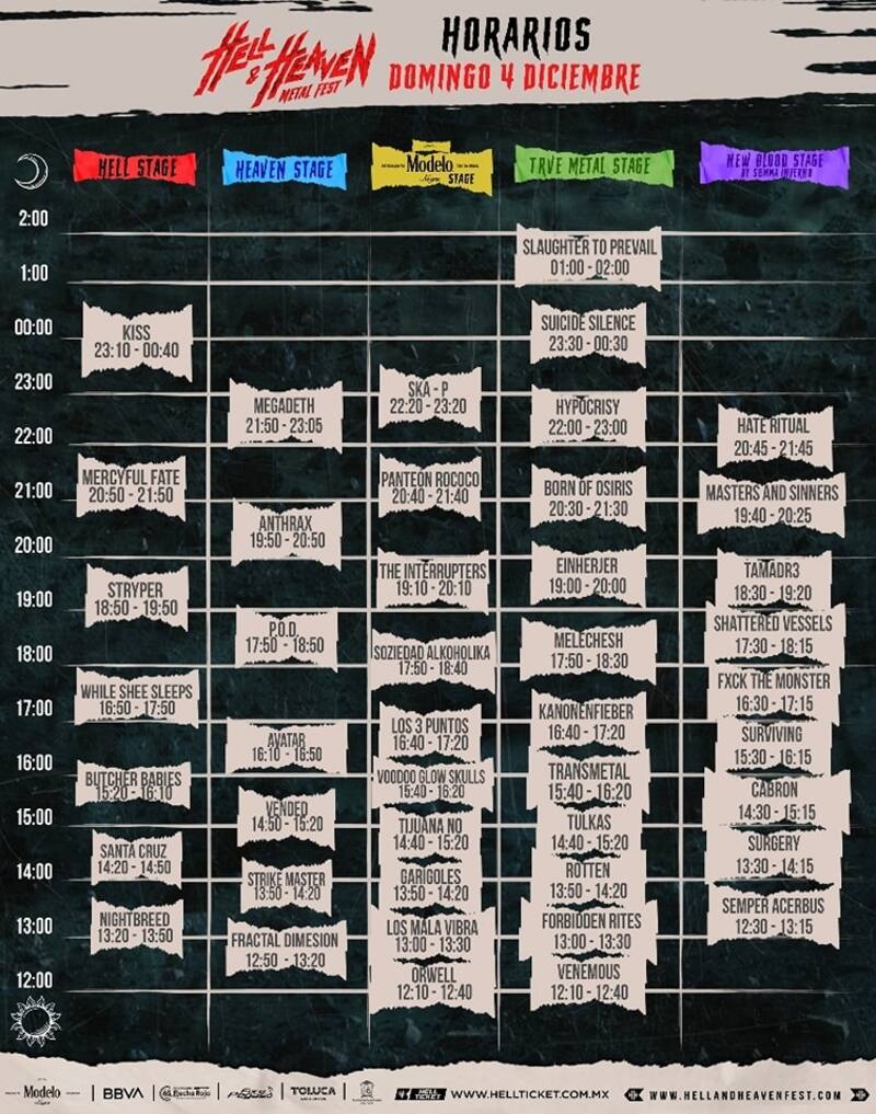 Habrá cinco escenarios, divididos: Hell Stage, Heaven Stage, Modelo Stage, TRVE Metal Stage y New Blood Stage, donde se presentarán alrededor de 40 banda, quienes prometen poner de cabeza a los miles de asistentes.