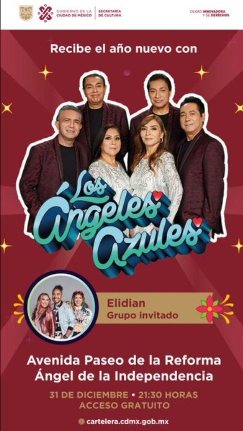 Serán Los Ángeles Azules los encargados de amenizar las celebraciones para recibir el nuevo año este 31 de diciembre en las inmediaciones de El Ángel de la Independencia. Aquí te decimos a qué hora inicia y qué rutas debes seguir para disfrutar del espectáculo.