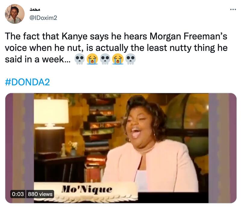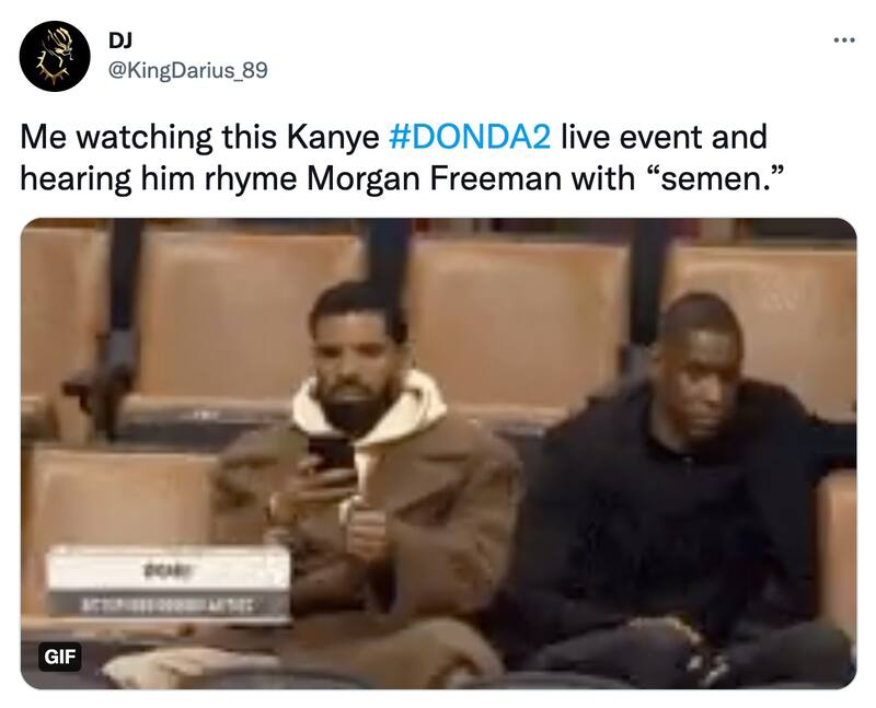 “Yo escuchando el show de Donda 2 en vivo y escucho que rimó Morgan Freeman con semen”.