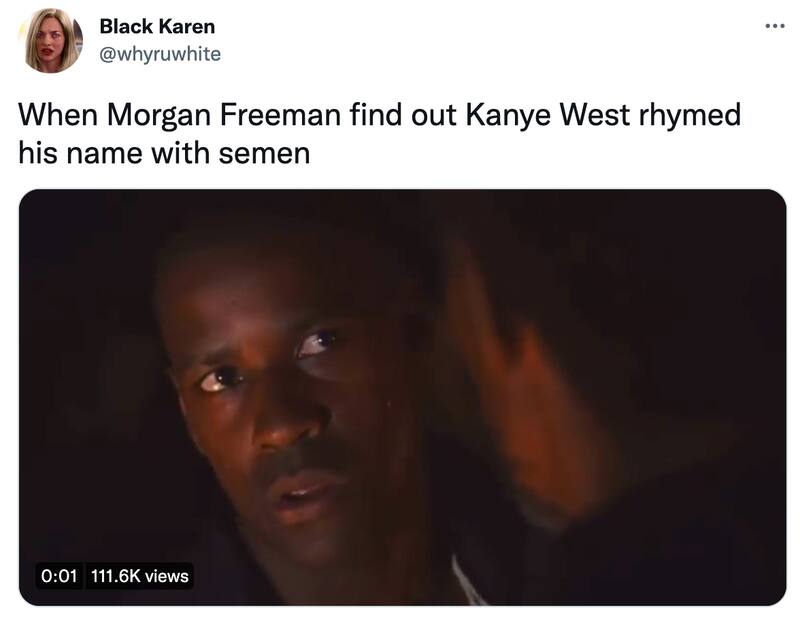 “Cuando Morgan Freeman se entera de que Kanye West rimó su nombre con semen”.