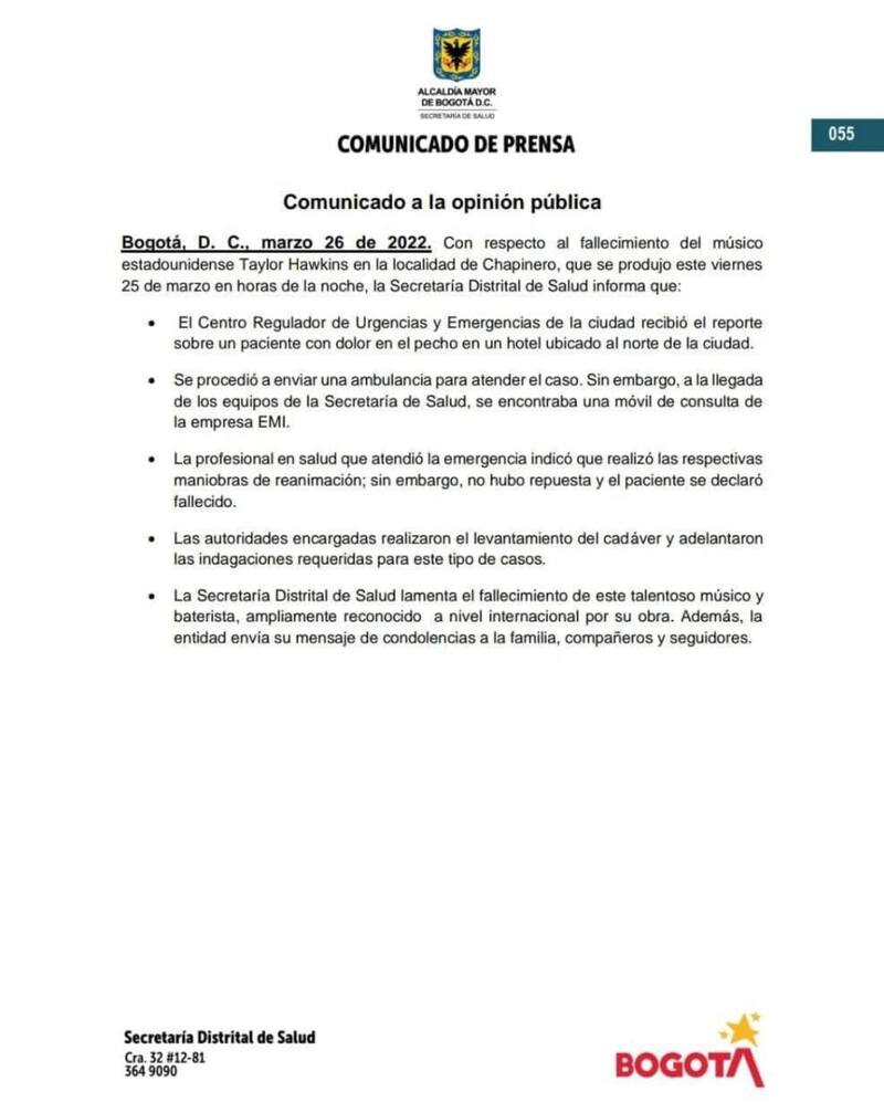 La banda de rock, liderada por Dave Grohl, se encontraba en Bogotá porque se presentarían en el Festival Picnic Stereo. Sin embargo, horas antes de subir al escenario, comunicaron a través de redes sociales que Taylor Hawkins había muerto.