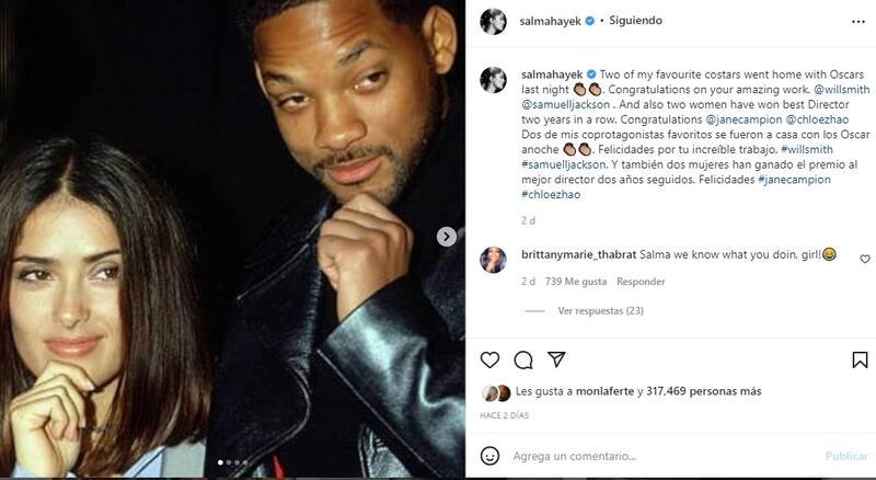 "Y la cachetada qué??", "WOW!!! Nunca espere eso de ti. Que decepción…" y "¡Salma sabemos lo que haces, chica!", fueron algunos de los comentarios que recibió, criticando su apoyo a Smith.