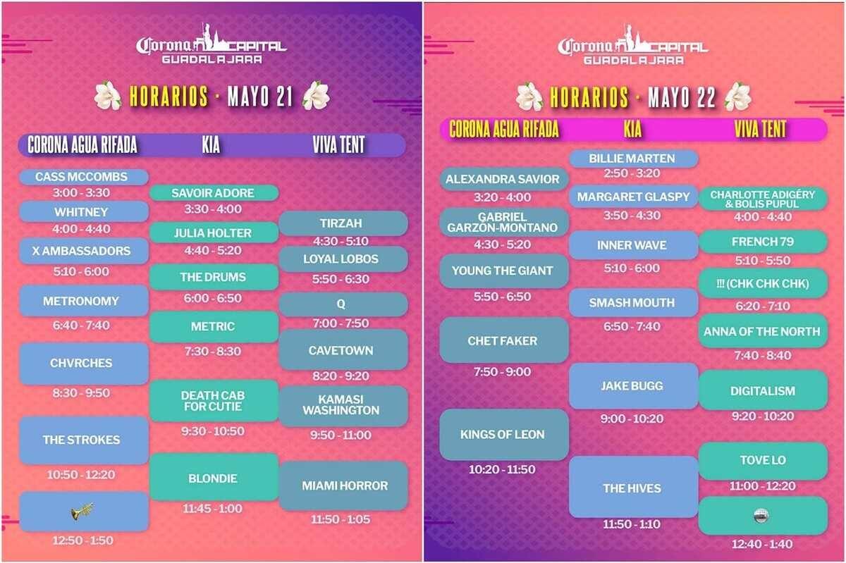 Después de dos años de ausencia, debido a la pandemia de coronavirus (COVI-19), la tercera edición del Festival Corona Capital 2022 en Guadalajara será este 21 y 22 de mayo en el Valle de la Arena VFG con la presencia de bandas nacionales e internacionales como The Strokes, Blondie, The Hives y Kings of Leon, quienes encabezan el cartel.