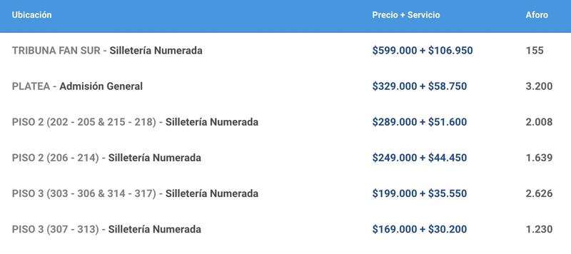 La preventa exclusiva y con precio especial para clientes de los Bancos Aval se podrán adquirir los días 13 y 14 de junio y, para el público general, a partir del 15 de julio a través de la página de "Tu Boleta".