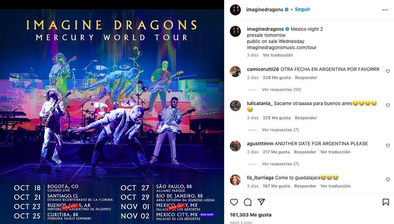 Imagine Dragons agotó en minutos los boletos para su concierto del 1 de noviembre en Ciudad de México. Ahora, la banda estadounidense, considerada la más exitosa de la década 2010-2020, ofrecerá un segundo show en la capital mexicana de su tour Mercury World derivado del lanzamiento de su álbum doble "Mercury: Acts 1 & 2".