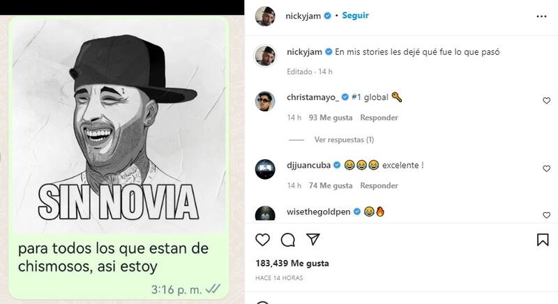 Para sorpresa de todos, el clip de "Sin Novia" tiene como protagonista a Aleska Génesis, quien le dice que ponga fin a su relación por teléfono. En su cuenta de Instagram, Nicky Jam se burló de todo compartiendo un meme de si mismo con el siguiente mensaje: "Para todos los que están de chismoso, así estoy".