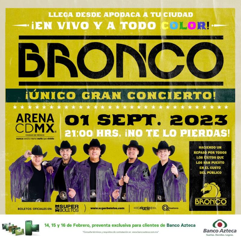 Una de las bandas más icónicas del regional mexicano, tendrá conciertos en CDMX y Monterrey como parte de su gira “En vivo y a todo color”. En la Arena CDMX se presentará el 1 de septiembre, y en la Arena Monterrey, el 30 del mismo mes. La preventa para ambas fechas será del 14 al 16 de febrero a través de Banco Azteca y en superboletos.com