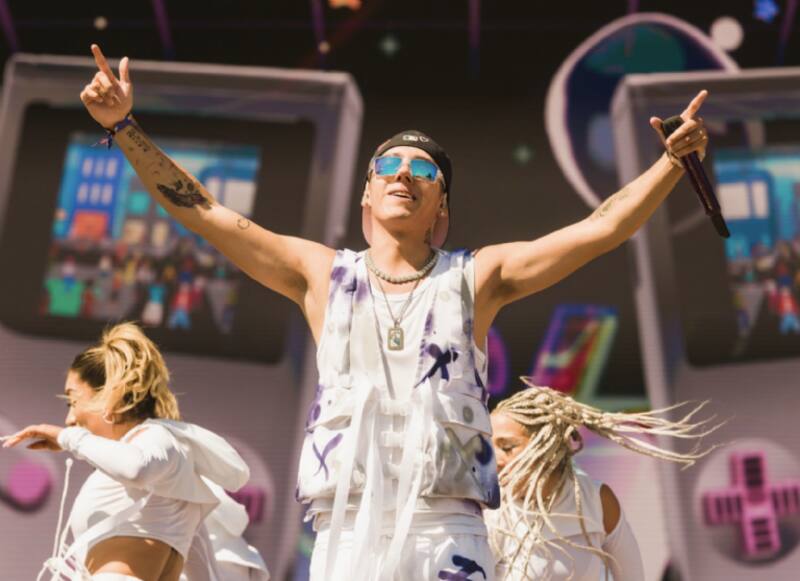 "El momento que viene ahora es muy hermoso. El año pasado estuve cantando como invitado y ahora estamos haciendo un show completo, gracias a diosito", dijo el cantante al presentar a Marcianeke, con quien cantó un par de canciones, como "Dímelo ma" que los llevó a la fama.