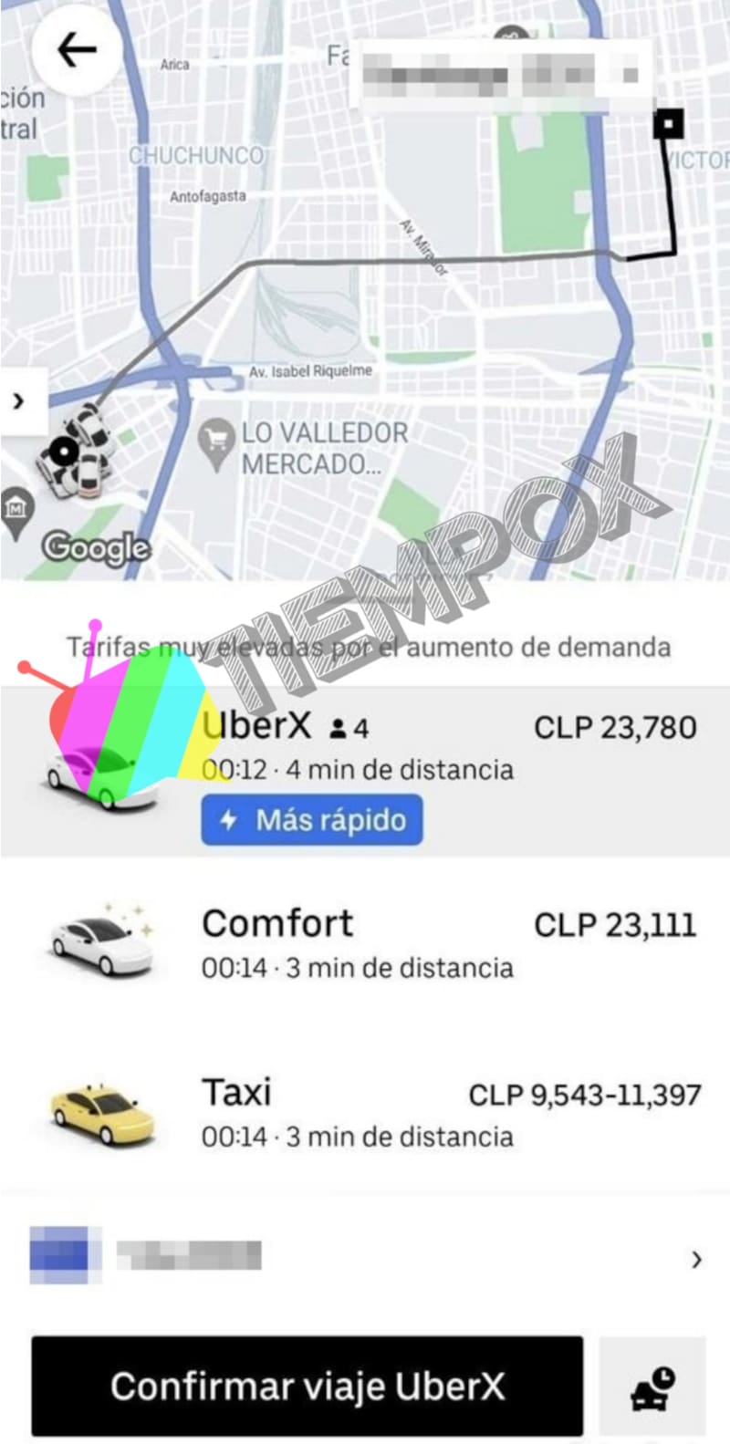 A eso de las 23:30 horas, el Uber tenía un valor de $23.780 si necesitabas trasladarte por las cercanías del Parque O’Higgins, que son unos 8.4 kilómetros.