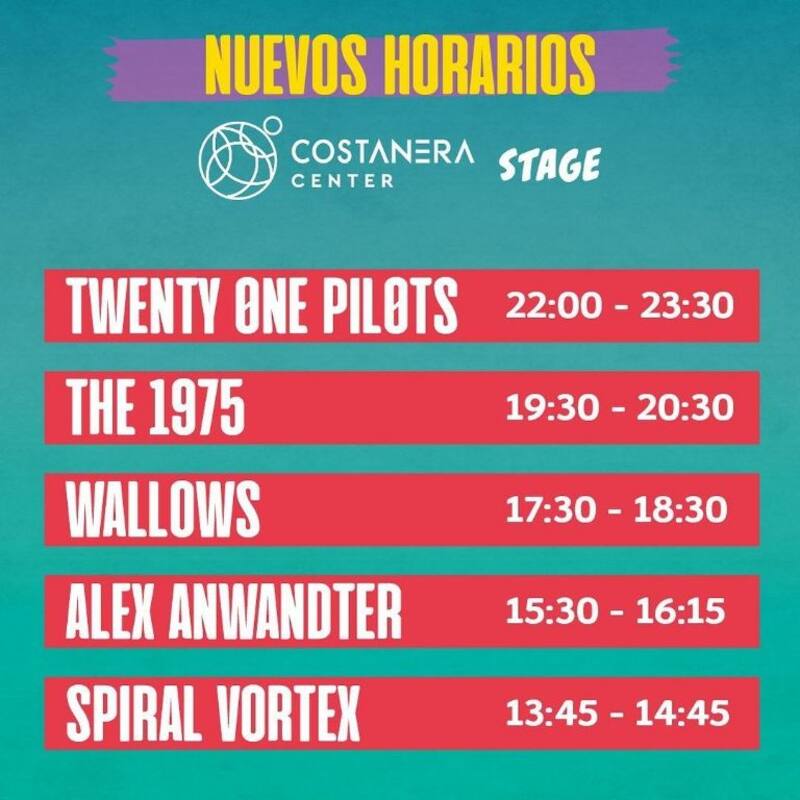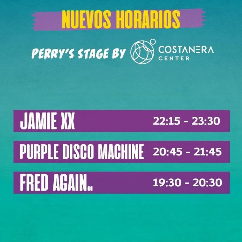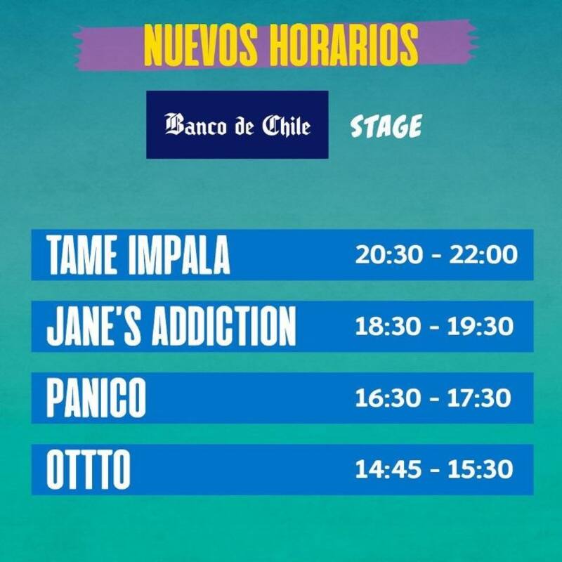 Los tres escenarios de Lollapalooza Chile 2023, Costanera, Banco de Chile, Axe y Perry' Stage tendrán modificaciones en los horarios de presentación de cada artistas.