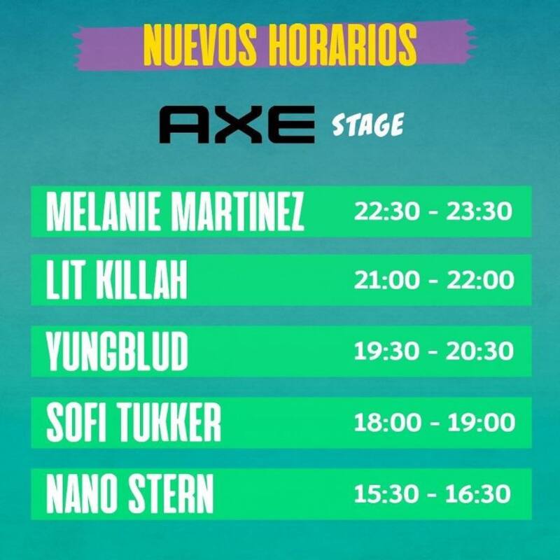 Por otro lado, YungBlud, quien se presentaría en el escenario de Banco de Chile a las 16:00 horas, ahora estará en el escenario de Axe desde las 19:30 a las 20:30 horas.