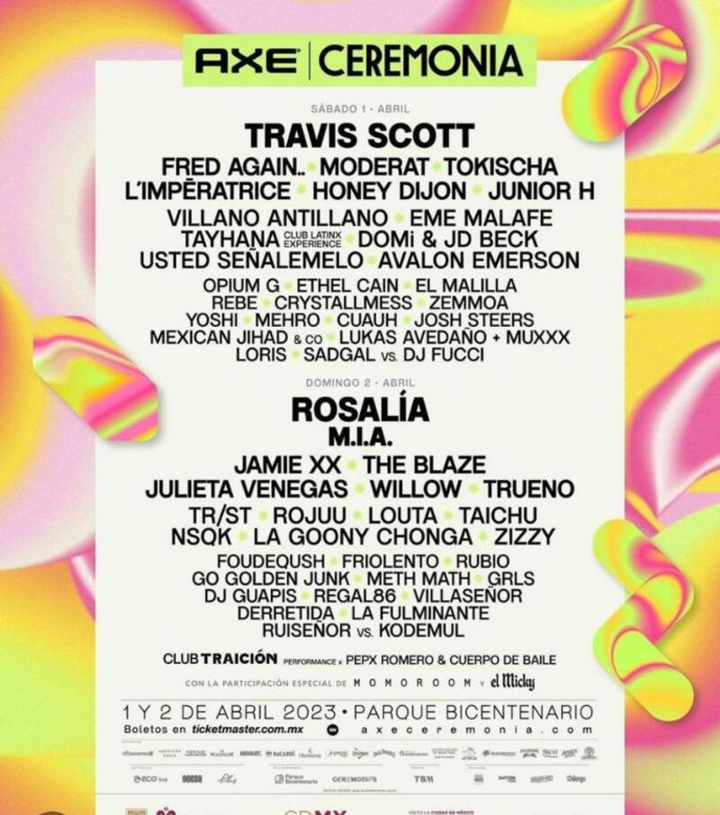 El Festival Ceremonia 2023se llevará a cabo este fin de semana y tendrá como parte de su cartel a Travis Scott y Rosalía. El concierto ha logrado gran aceptación en el público que este año será en dos días.