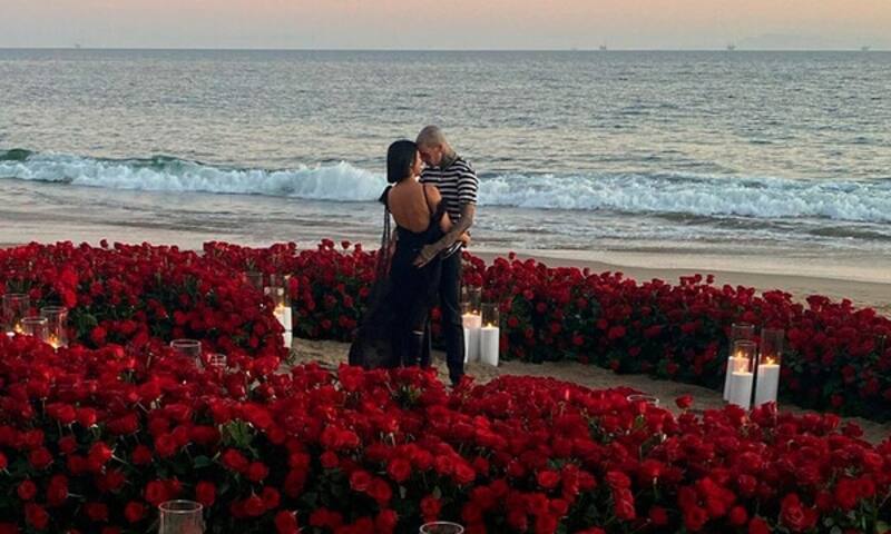 Al parecer estuvo presente la familia de ambos, pues Kim Kardashian y los hijos del baterista compartieron imágenes del romántico momento a través de sus redes sociales, así como los detalles de una cena que hubo después.