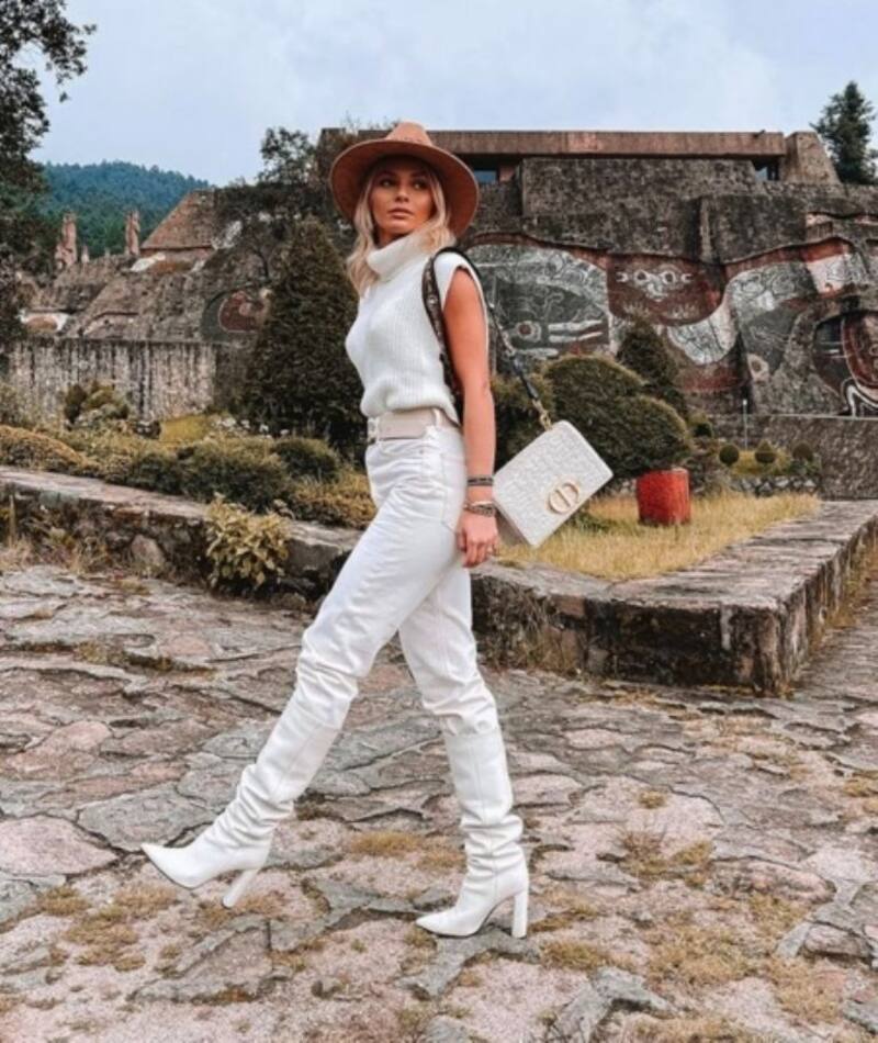 Recientemente en su Instagram, la novia de Gabriel Soto cautivó a sus más de tres millones de seguidores con un outfit inspirado en la esencia cowboy al llevar un sombrero café y unas botas blancas, recordando sin duda a Jennifer Lopez.