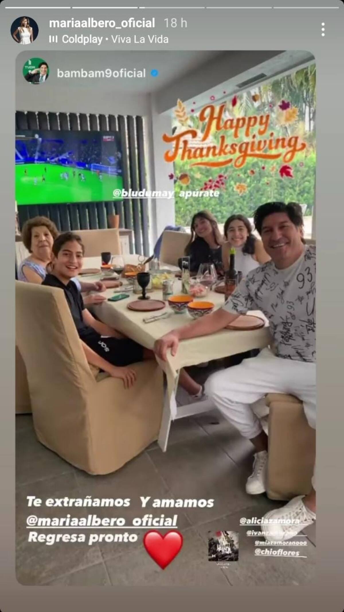 "Te extraño y amamos, María Alberó. Regresa pronto", reflexionó el exdeportista y actual comentarista deportivo.