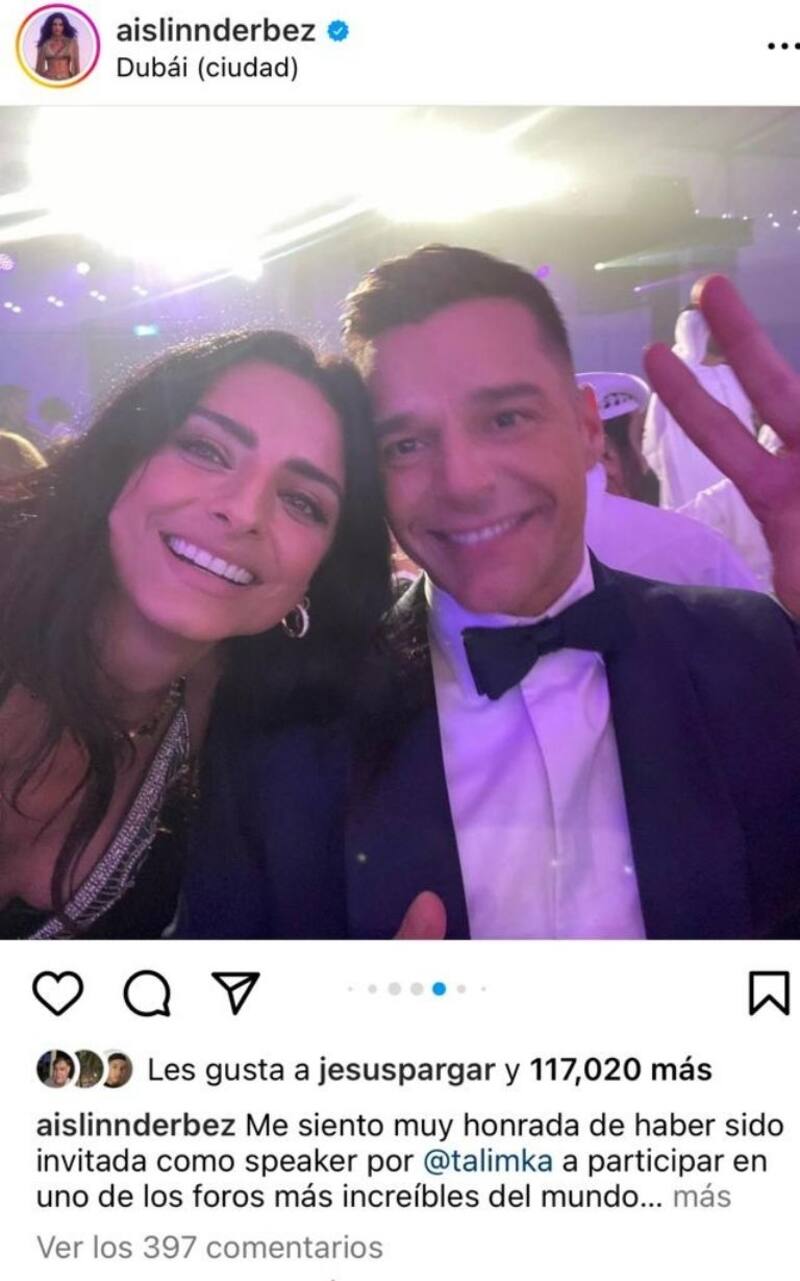 Entre las instantáneas que compartió con sus seguidores destacó una en la que posó al lado de nada más y nada menos que Ricky Martin, quien al parecer también estaba en el mismo foro.