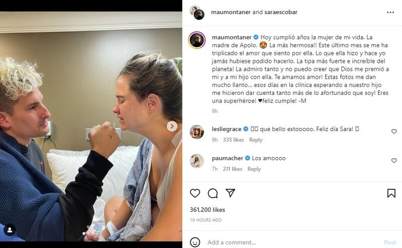Luego, Mau Montaner contó que "este último mes se me ha triplicado el amor que siento por ella". "Lo que ella hizo y hace yo jamás hubiese podido hacerlo. ¡La tipa más fuerte e increíble del planeta! La admiro tanto y no puedo creer que Dios me premió a mí y a mi hijo con ella. ¡Te amamos amor!", agregó.