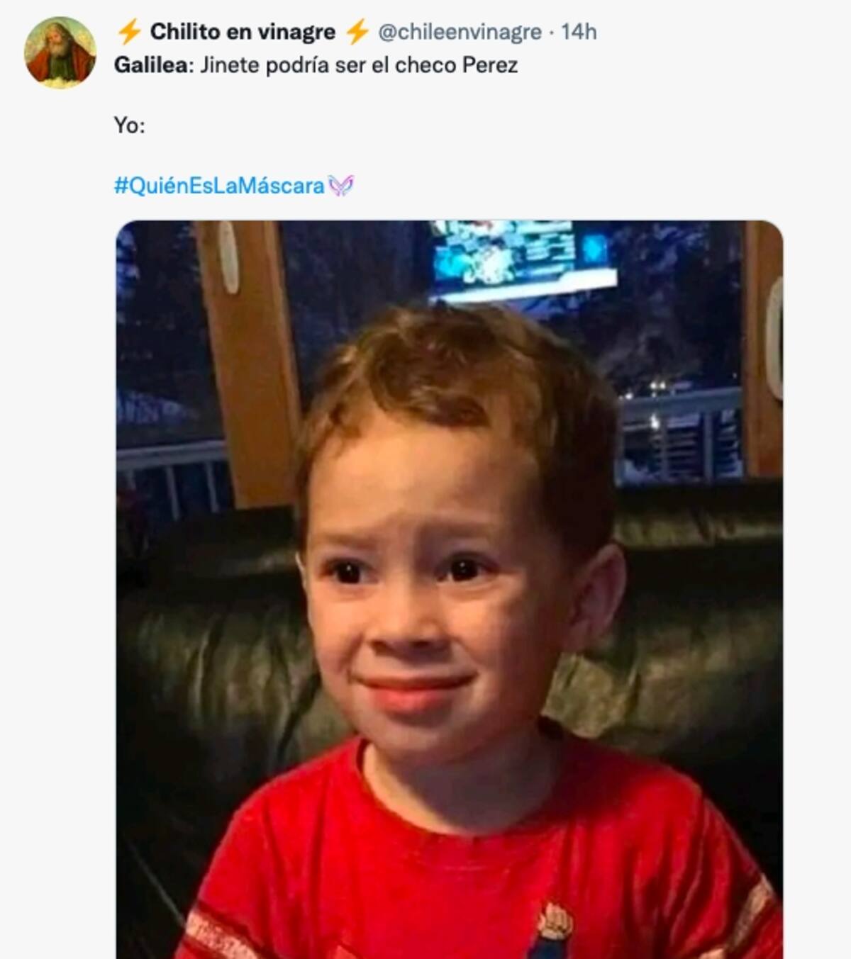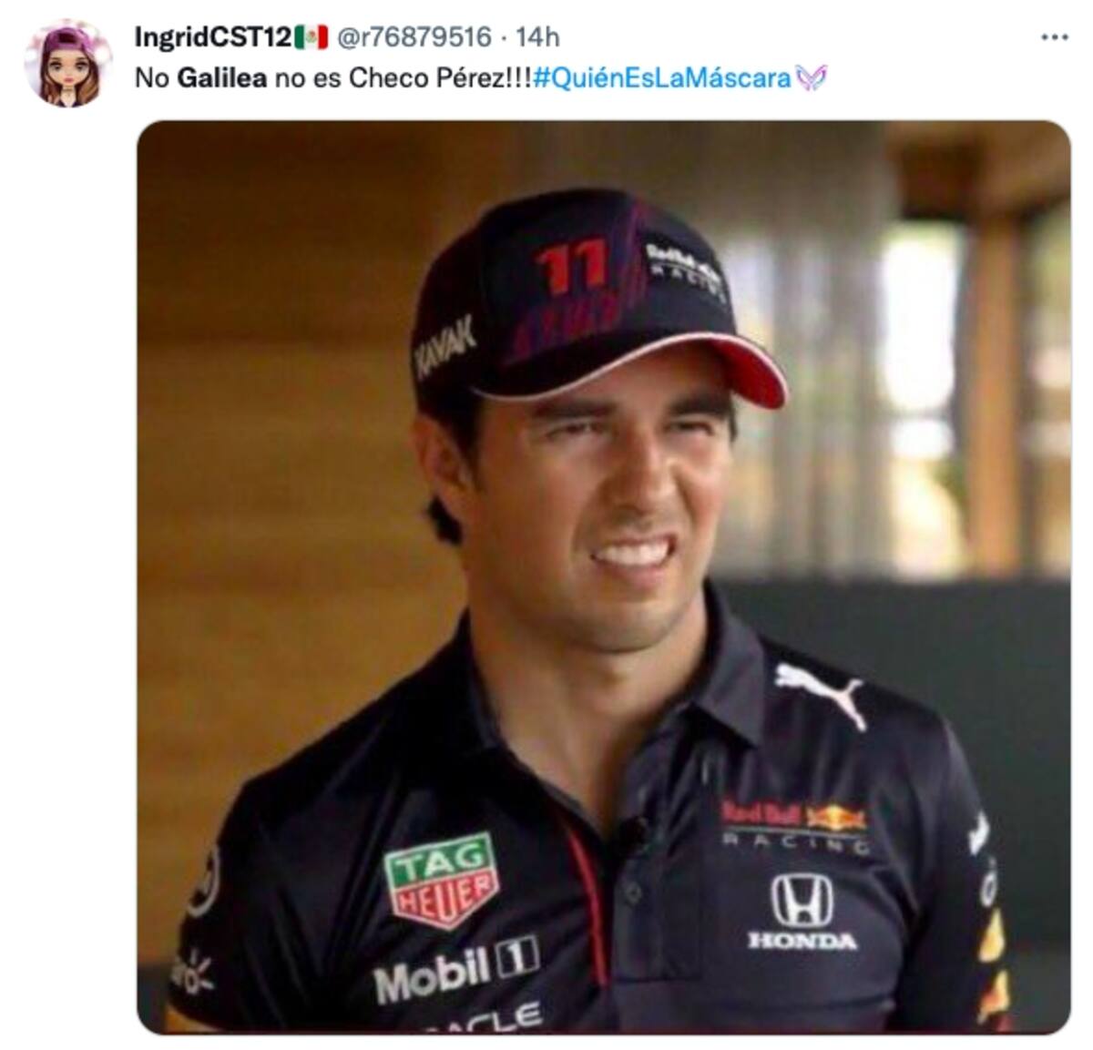 La conductora, encargada de hacer las investigaciones para descubrir a los artistas ocultos bajo los disfraces, dijo en algún momento que detrás del personaje de Jinete podría estar Sergio "Checo" Pérez.