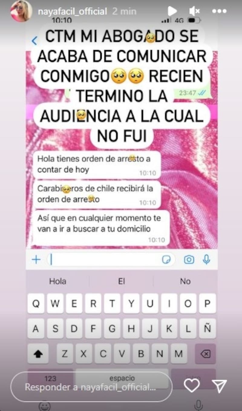 La joven compartió un registro en el que se quitó la ropa en una iglesia en la ciudad de Caldera, al norte de Chile, lo que generó una gran polémica, siendo citada ante la ley el pasado lunes. Pero Naya Fácil se negó a la citación, asegurando que la alcaldesa de aquella localidad está haciendo "el medio show", por lo que tiene "rabia y pena". "Yo jamás hice nada tan grave para llegar a todo esto", expuso en sus historias de Instagram.