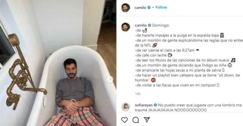 En su última publicación de Instagram, Camilo contó lo que había hecho el domingo, entre lo que destacó la opinión de que sus seguidores creen que Índigo será niñita.