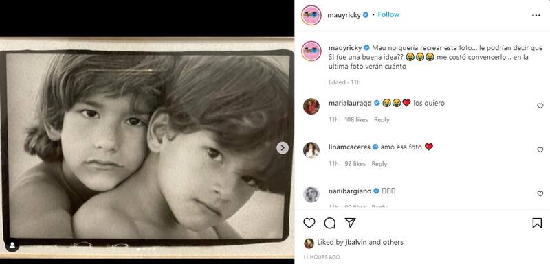 Por ello, a días de entrar al tercer mes de este 2022, el dúo sigue compartiendo su alegría con sus seguidores. En esta oportunidad, Mau y Ricky se volvieron nostálgicos y recrearon una antigua foto. En la imagen en sepia los hijos de Ricardo Montaner salen muy niños y en la que el mayor sale abrazando a su hermano menor.