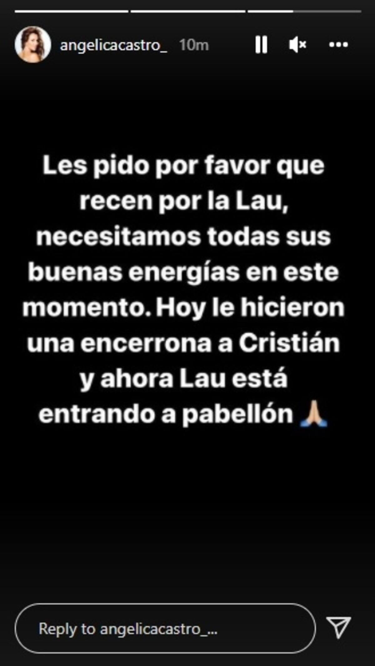 Así lo comunicó la esposa de Cristián de la Fuente, Angélica Castro, en su cuenta de Instagram. En sus historias, la conductora de televisión pidió "por favor que recen por Lau". "Necesitamos todas sus buenas energías en este momento", agregó.