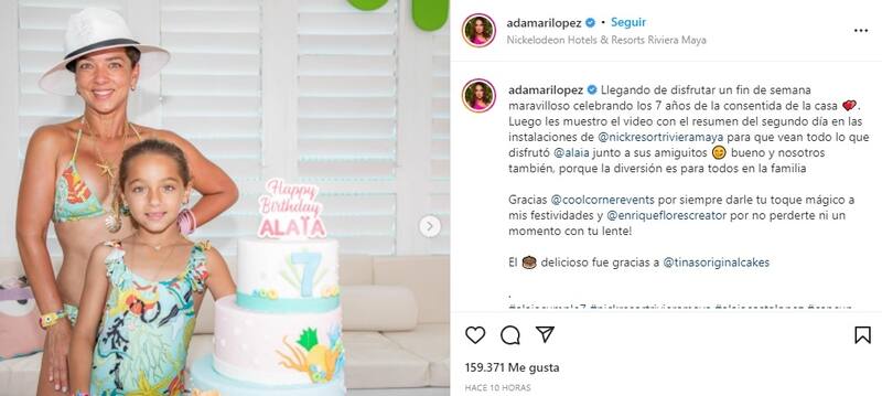 "Llegando de disfrutar un fin de semana maravilloso celebrando los 7 años de la consentida de la casa. Luego les muestro el video con el resumen del segundo día en las instalaciones de @nickresortrivieramaya para que vean todo lo que disfrutó @alaia junto a sus amiguitos. Bueno y nosotros también, porque la diversión es para todos en la familia", expuso.