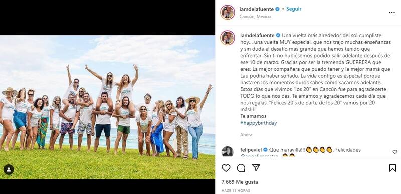 Cristián de la Fuente aseguró que "la vida contigo es especial porque hasta en los momentos duros sabes como sacarnos adelante". Además, tuvo palabras para este especial festejo: "Estos días que vivimos 'los 20' en Cancún fue para agradecerte TODO lo que nos das. Te amamos y agradecemos cada día que nos regalas. "Felices 20's de parte de los 20" vamos por 20 más!!!!".