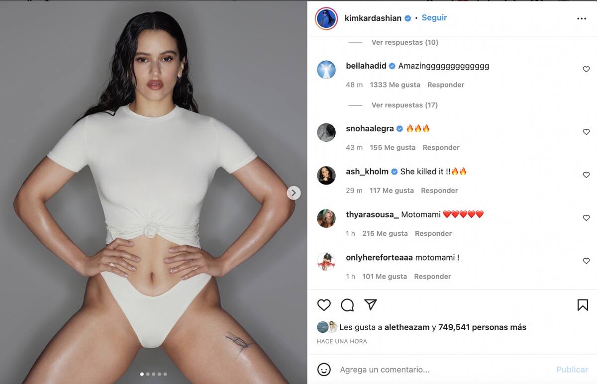 "Una fuerza cultural se encuentra con estilos clásicos y modernos: presentando @rosalia.vt para SKIMS, en nuestra colección exclusiva Cotton.", fue el comunicado que dieron desde la cuenta de la prestigiosa marca.