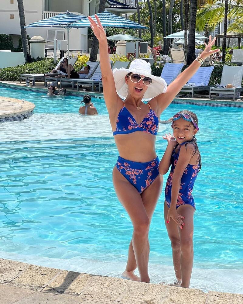 Antes ya había enternecido a sus fans con fotos con Alaïa disfrutando de la piscina del hotel en el que se quedaron.